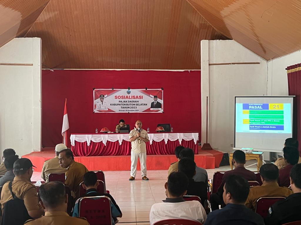 Kantor Pelayanan Pajak (KPP) Pratama Baubau melaksanakan sosialisasi perpajakan terkait dana desa kepada kepala desa di Kabupaten Buton Selatan. Kegiatan ini dilangsungkan di Aula Lamaindo Kecamatan Batauga Kabupaten Buton Selatan (Selasa, 5/12).