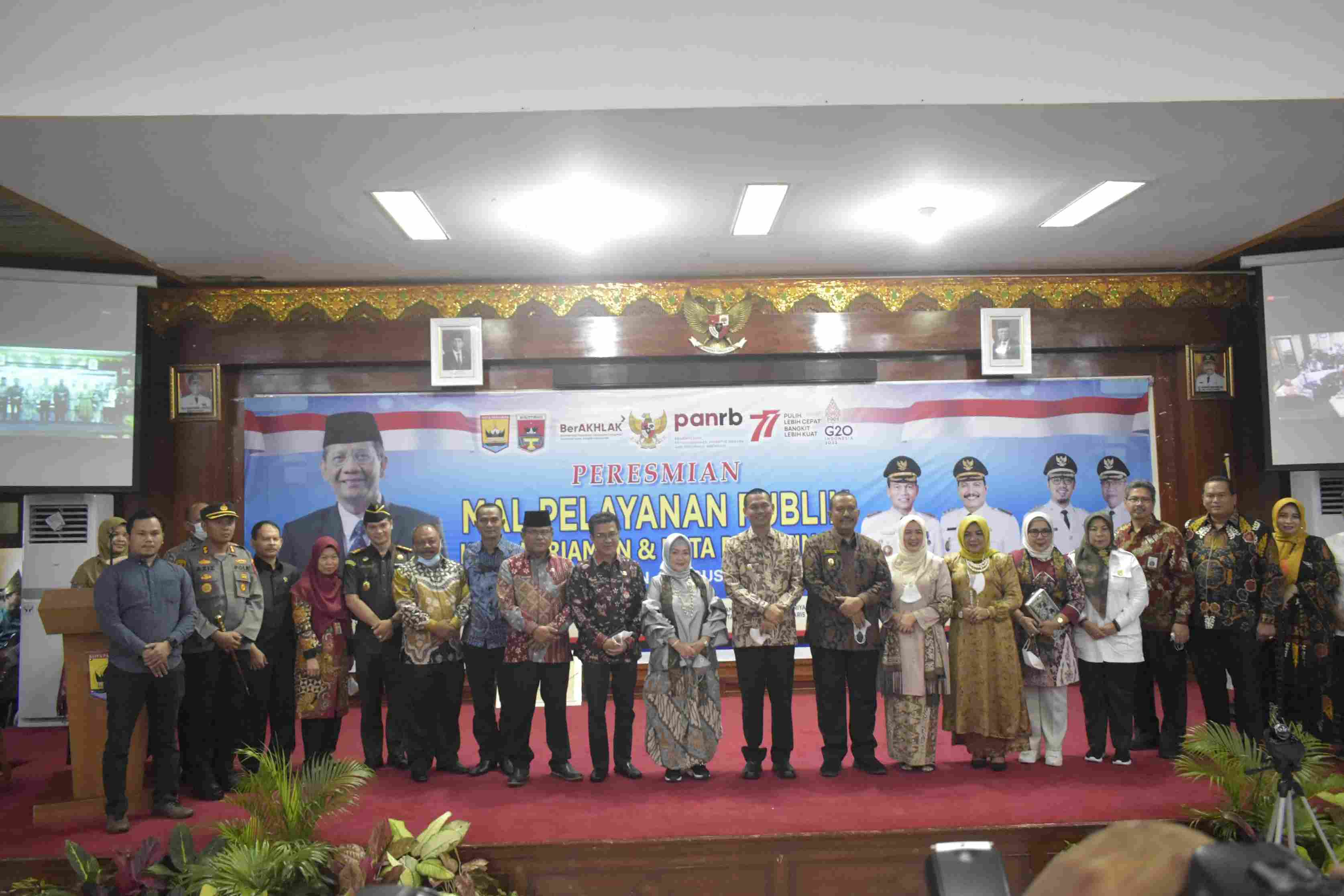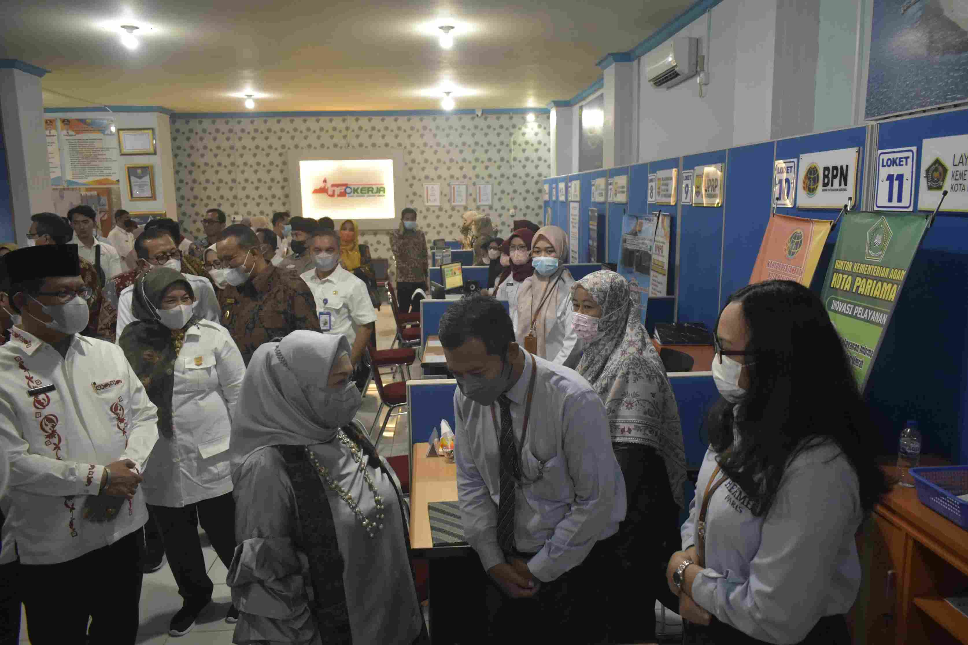 Deputi Bidang Pelayanan Publik Kementerian Pendayagunaan Aparatur Negara dan Reformasi Birokrasi (PANRB) Diah Natalisa bersama dengan Wali Kota Pariaman Genius Umar melakukan peresmian Mal Pelayanan Publik (MPP) di Balai Kota Pariaman (Rabu, 31/8).