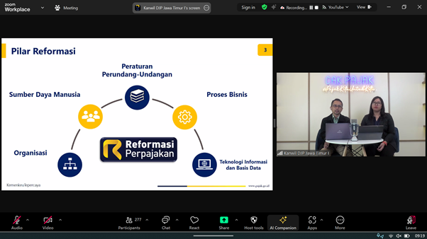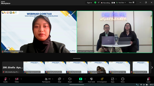 Kantor Wilayah Direktorat Jenderal Pajak Jawa Timur I (Kanwil DJP Jatim I) berkolaborasi dengan Tax Center Universitas Islam Negeri Sunan Ampel Surabaya (UINSA) dalam penyelenggaraan seminar daring bertajuk Kupas Tuntas Coretax: Transformasi Sistem Pelaporan Perpajakan di Indonesia secara daring (Kamis, 17/4).