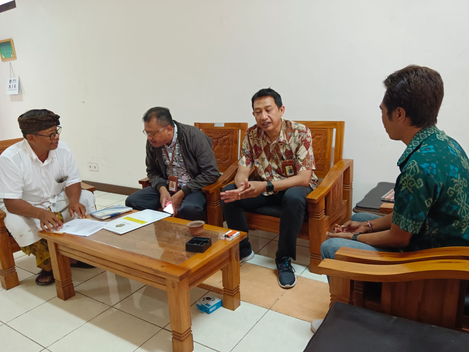 Kantor Pelayanan Pajak (KPP) Pratama Badung Utara diwakili oleh Kepala Seksi Pengawasan II Dian Agung Susanto berkoordinasi dengan pihak Pemda Badung yang diwakili oleh Sekretaris Dinas Pemberdayaan Masyarakat Desa (PMD) Kab Badung I Gede Sukadana dan perwakilan BUMDES se-Kabupaten Badung yang diwakili oleh Merta Sedana sebagai Pimpinan BUMDES wilayah Badung di Kantor Dinas PMD, Kabupaten Badung, Bali (Selasa, 23/4) .