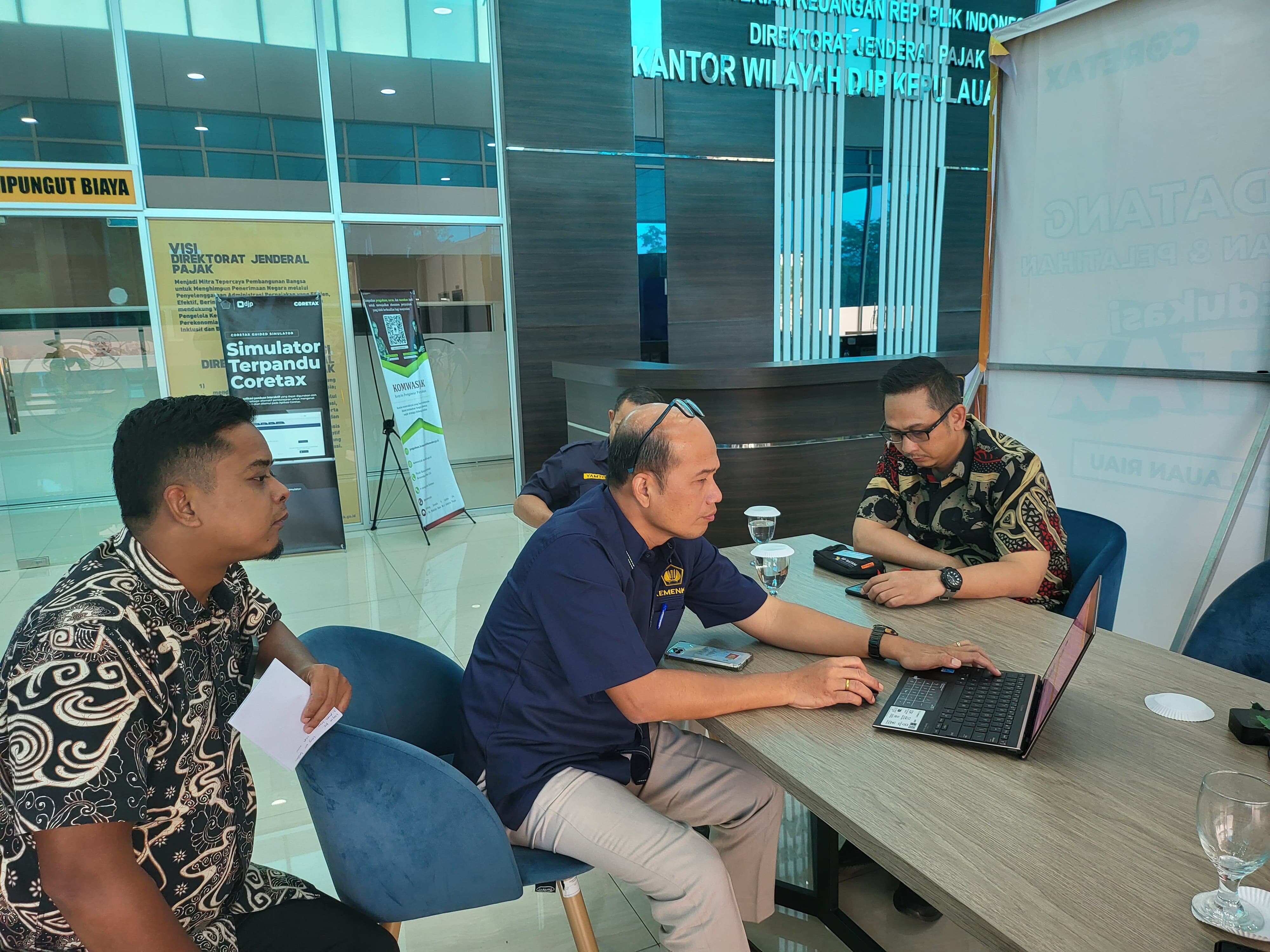 Bendahara BP Batam berkonsultasi mengenai proses bisnis perpajakan baru yang terdapat di Coretax DJP didampingi oleh Tim Fungsional Penyuluh Pajak Kanwil DJP Kepri.