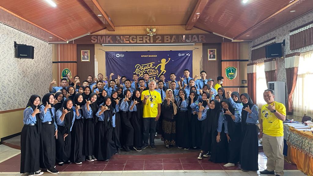 Puluhan siswa SMK Negeri 2 Kota Banjar mengikuti kegiatan Pajak Bertutur yang diadakan oleh Kantor Pelayanan Penyuluhan dan Konsultasi Perpajakan (KP2KP) Banjar di Aula SMKN 2 Banjar, jalan Banjar Ciamis, Cipadung, Kota Banjar (Kamis, (27/7).