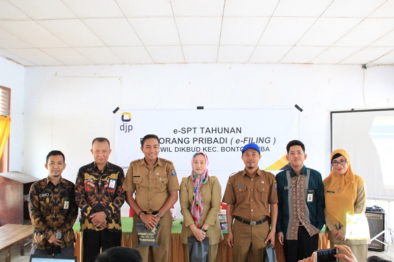 Kantor Pelayanan, Penyuluhan, dan Konsultasi Perpajakan (KP2KP) Bontosunggu bersinergi dengan Kantor Wilayah Dinas Pendidikan dan Kebudayaan (Korwil Dikbud) Kecamatan Bontoramba Kabupaten Jeneponto mengadakan acara Sosialisasi e-SPT Tahunan Orang Pribadi dalam bentuk elektronik melalui e-Filling di gedung PKG SDI No. 124 Bontoramba Kabupaten Jeneponto (Selasa, 4/2). Sosialisasi ini ditujukan untuk seluruh bendahara dan operator sekolah mulai dari TK, SD, dan SMP untuk wilayah Kecamatan Bontoramba Kabupaten Jeneponto.