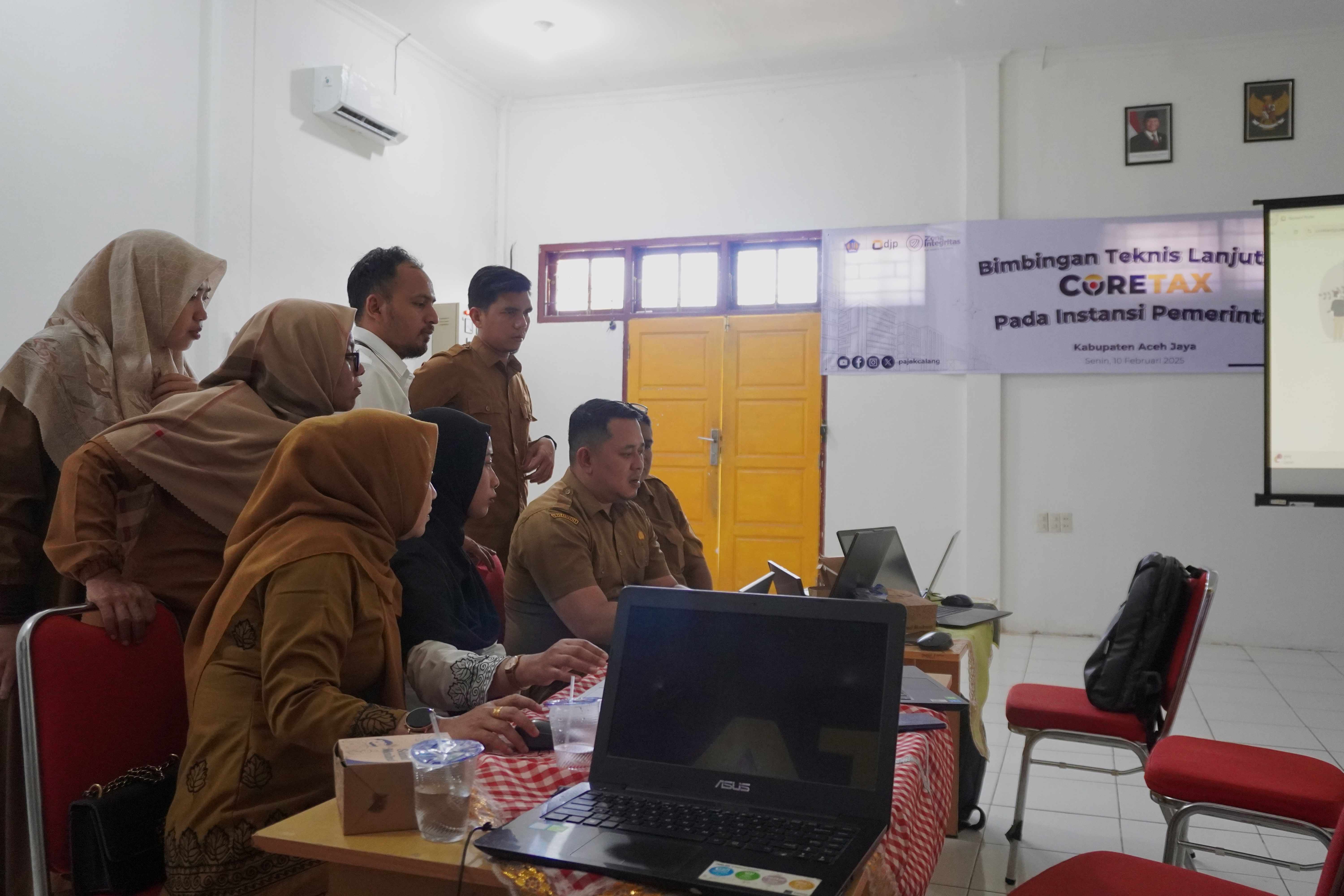 Kantor Pelayanan, Penyuluhan, dan Konsultasi Perpajakan (KP2KP) Calang menggelar kegiatan bertajuk “Bimbingan Teknis Lanjutan Aplikasi Coretax DJP pada Instansi Pemerintah”. KP2KP Calang mengundang enam instansi pemerintah daerah di lingkungan Kabupaten Aceh Jaya untuk hadir di Aula KP2KP Calang, Kabupaten Aceh Jaya (Senin, 10/2).