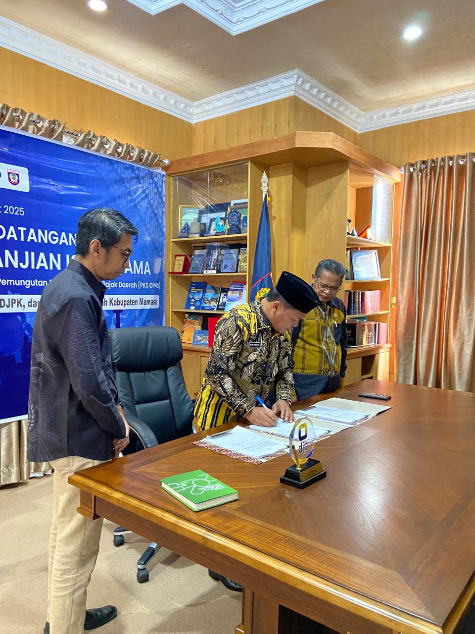 Dalam hal ini, Bupati Kabupaten Mamasa, Welem Sambolangi, S.E., M.M., melakukan penandatanganan PKS OP4D di Kantor Bupati Kabupaten Mamasa, Kabupaten Mamasa (Rabu, 12/3).