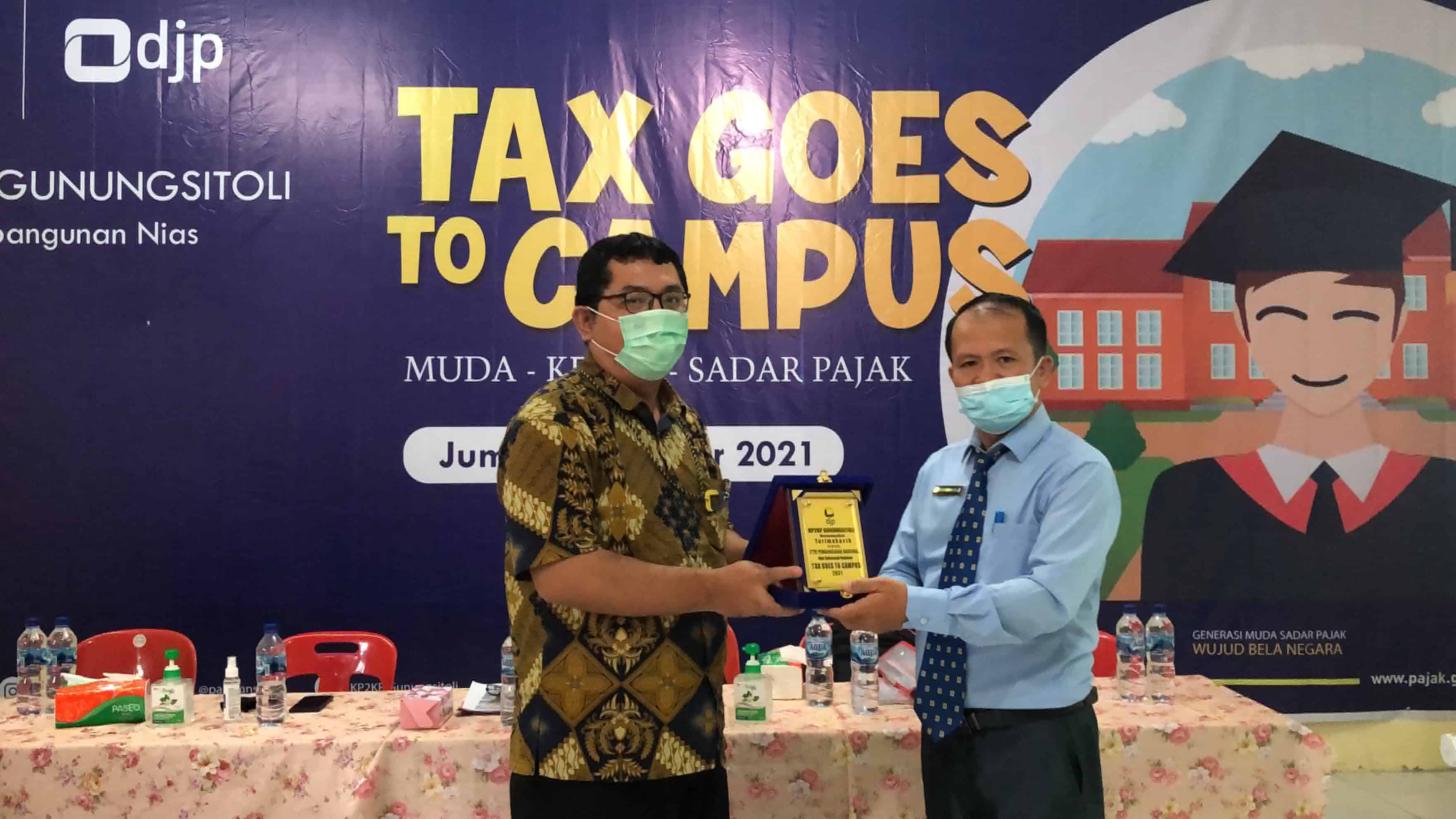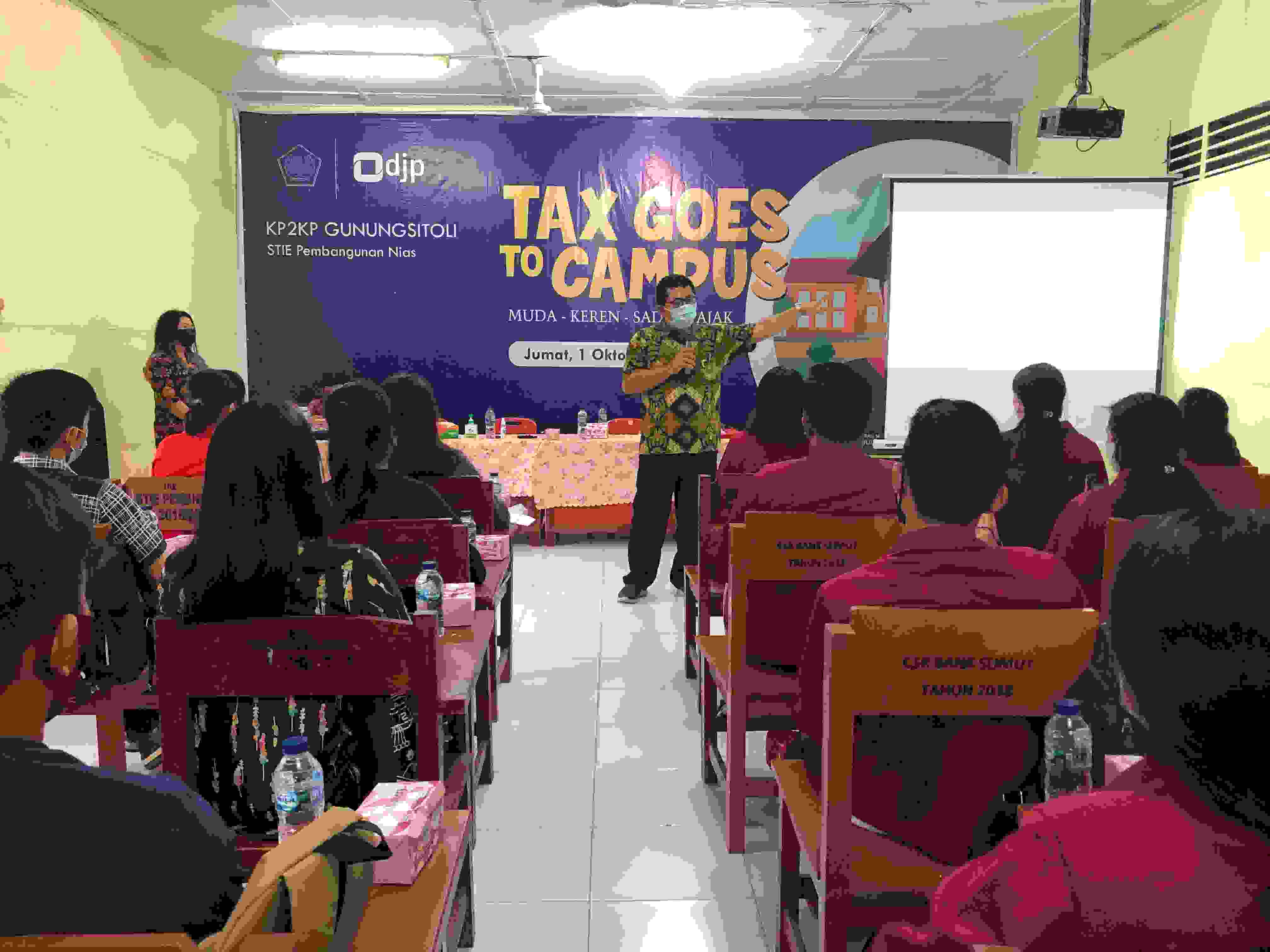 Kantor Pelayanan, Penyuluhan, dan Konsultasi Perpajakan (KP2KP) Gunungsitoli Rynaldi Zalukhu menyelenggarakan kegiatan Tax Goes to Campus (TGTC) secara luring dengan tema "Generasi Muda, Sadar Pajak, Wujud Bela Negara" di STIE Pembnas Nias (Kamis, 30/9). Acara dibuka dengan kata sambutan dari Putra Arif Simanjuntak selaku Kepala KP2KP Gunungsitoli, dan dilanjutkan oleh Wakil Ketua STIE Pembnas Nias Yuterlin Zalukhu. Pelaksana dan PPNPN KP2KP Gunungsitoli turut berpartisipasi dalam melancarkan pelaksanaan kegiatan Tax Goes to Campus ini.