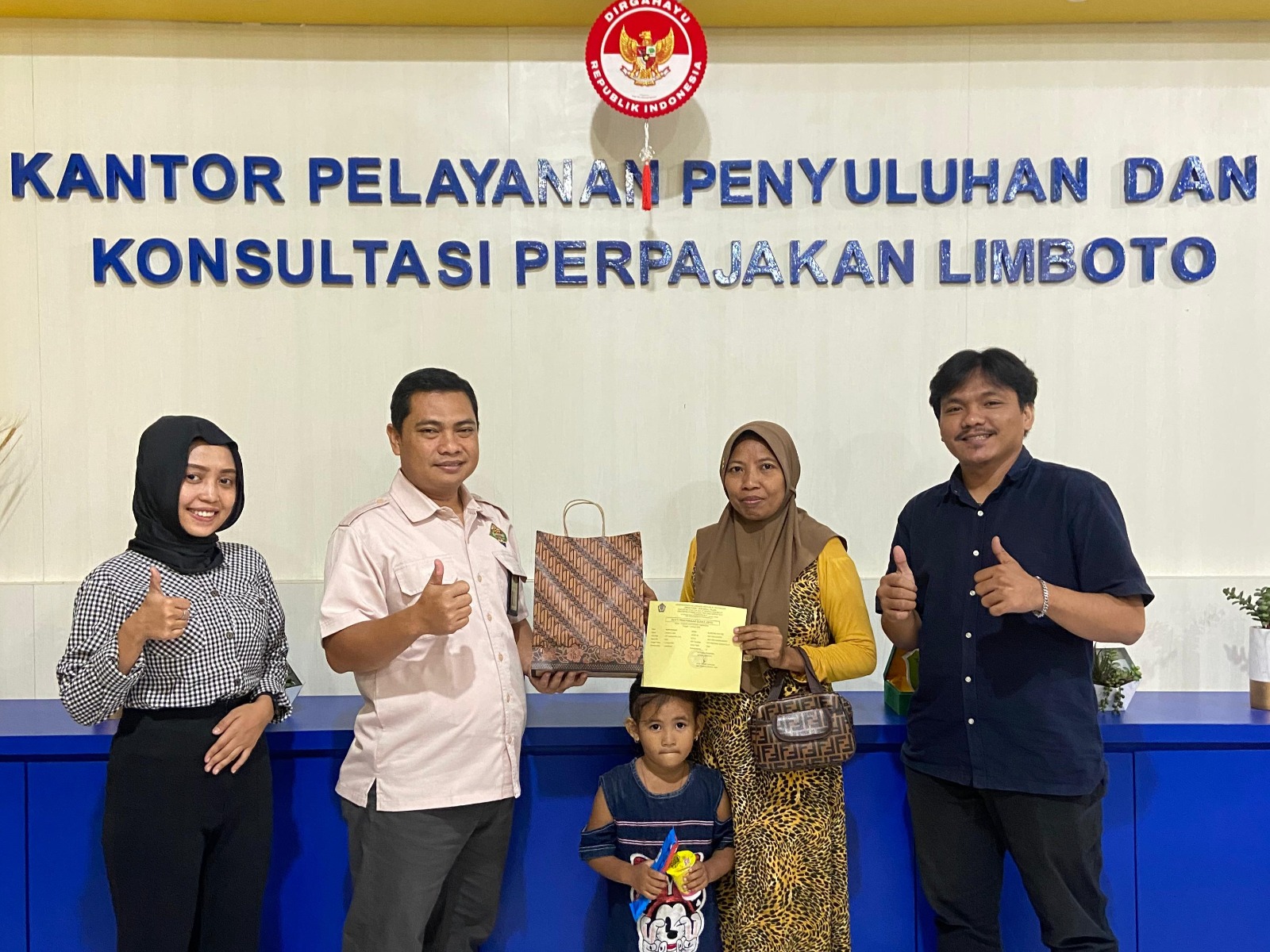 Pergantian tahun telah berlangsung, Kantor Pelayanan, Penyuluhan, dan Konsultasi Perpajakan (KP2KP) Limboto kembali membuka pelayanan dan memberikan penghargaan kepada wajib pajak yang pertama melakukan pelaporan Surat Pemberitahuan (SPT) Tahunan pada tahun 2025 di KP2KP Limboto, Kabupaten Limboto (Kamis, 2/1).