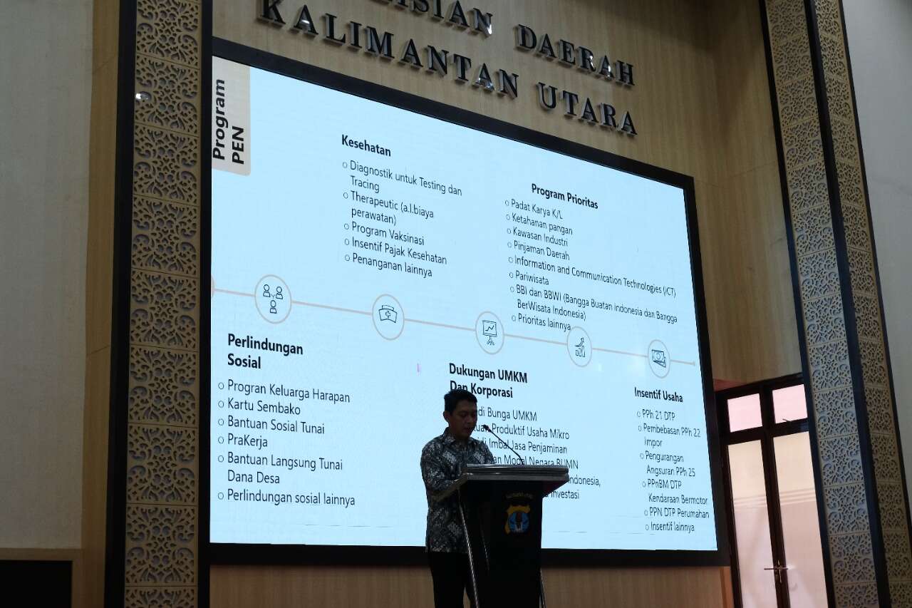 Kepala Kantor Pelayanan Penyuluhan dan Konsultasi Perpajakan (KP2KP) Malinau Andika Setiawan menghadiri Acara Diseminasi Program Pemulihan Ekonomi Nasional dan Insentif Perpajakan bertempat di Ruang Command Center Kepolisian Daerah (Polda) Kalimantan Utara, Kabupaten Bulungan (Kamis, 30/9).