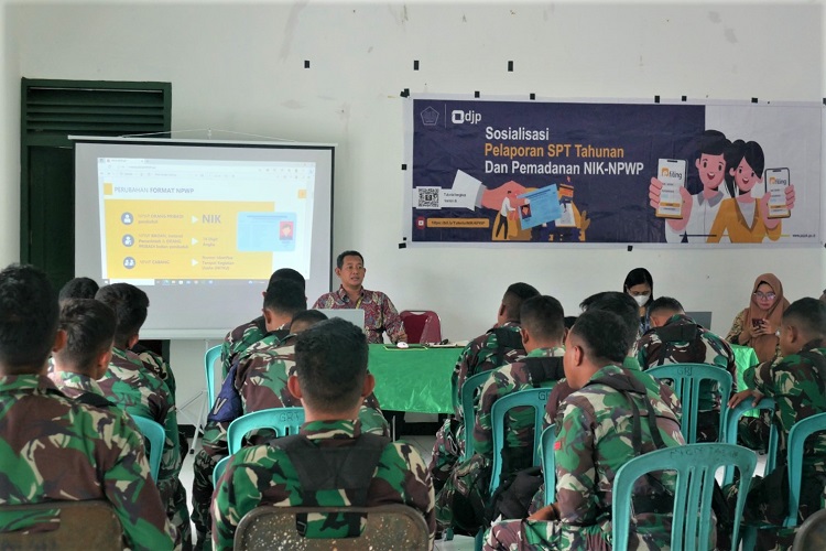 Kantor Pelayanan, Penyuluhan, dan Konsultasi Perpajakan (KP2KP) Namlea melnyelenggarakan asistensi pemadanan NIK menjadi NPWP kepada para anggota Kompi Senapan A Yonif 731/Kabaresi, Kabupaten Buru, Maluku (Selasa, 28/3). Bertempat di Markas Yonif 731/Kabaresi, kegiatan asistensi pemadanan NIK-NPWP ini dihadiri oleh 40 peserta.