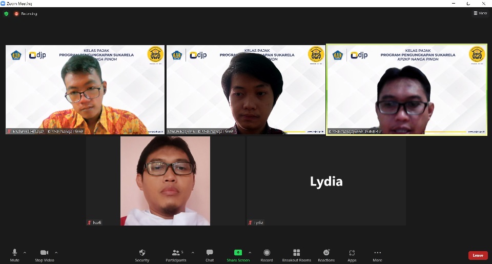 Kantor Pelayanan, Penyuluhan, dan Konsultasi Perpajakan (KP2KP) Nanga Pinoh gencar sosialisasi Program Pengungkapan Sukarela (PPS) secara daring melalui media Zoom Meeting di Nanga Pinoh (Jumat, 25/2).