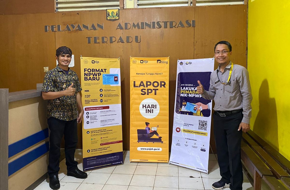 Kepala Kantor Pelayanan, Penyuluhan, dan Konsultasi Perpajakan (KP2KP) Pelabuhan Ratu Djoko Widodo mendatangi Kantor Lurah Palabuhan Ratu untuk menyosialisasikan program pemadanan Nomor Induk Kependudukan (NIK) sebagai Nomor Pokok Wajib Pajak (NPWP) di Jalan Jend. Ahmad Yani, Palabuhanratu, Kabupaten Sukabumi (Kamis, 2/3).