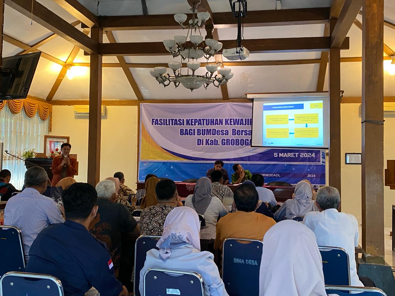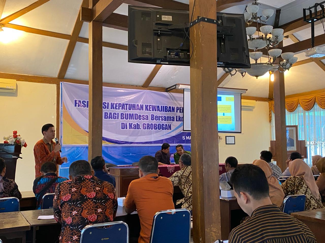 Kepala Kantor Pelayanan Penyuluhan dan Konsultasi Perpajakan (KP2KP) Purwodadi hadir memenuhi undangan Kepala Dinas Pemberdayaan Masyarakat dan Desa (Dispermades) Kabupaten Grobogan sebagai narasumber pada kegiatan Fasilitasi Kepatuhan Kewajiban Perpajakan Badan Usaha Milik Desa (BUMDes) Bersama di Kantor Dispermades, Jl. Gn. Muria No. 4, Purwodadi (5/3).