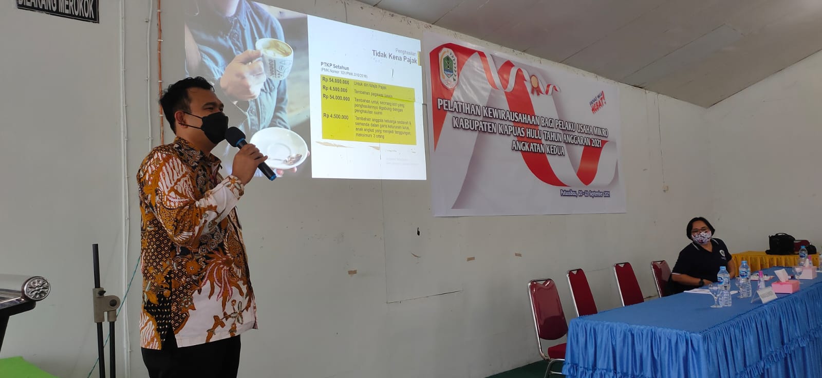 Dinas Koperasi Usaha Kecil Menengah dan Perdagangan Kabupaten Kapuas Hulu mengadakan pelatihan kewirausahaan bagi pelaku usaha mikro se-Kabupaten Kapuas Hulu di Aula Penginapan Mitra Sentosa, Kapuas Hulu (Rabu, 22/9). Sebanyak 40 pengrajin tenun dan manik dari beberapa kecamatan di Kabupaten Kapuas Hulu mengikuti pelatihan ini. Pelatihan ini sendiri dilaksanakan selama tiga hari sejak Senin, 20 September 2021.