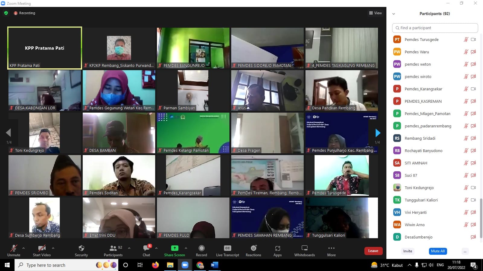Kantor Pelayanan Penyuluhan dan Konsultasi Perpajakan (KP2KP) Rembang mengadakan acara Edukasi Perpajakan Instansi Pemerintah Desa melalui media Zoom meeting di Rembang yang dilaksanakan selama 3 hari mulai (Selasa, 19/7)