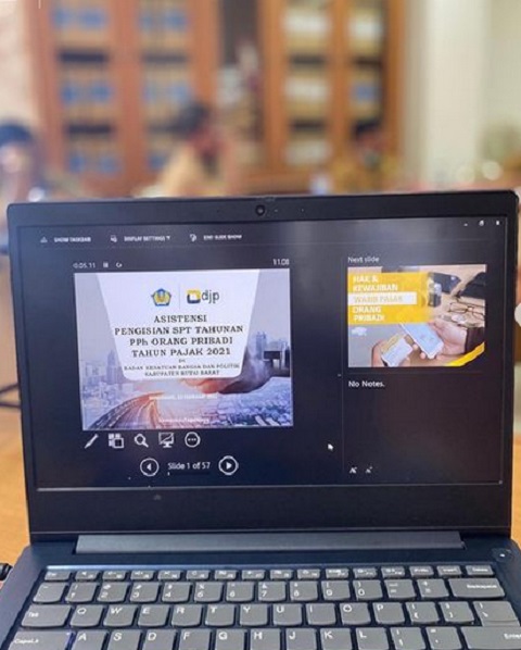 Terlihat sejumlah pegawai yang memenuhi ruangan dan memperhatikan panduan pengisian SPT Tahunan. Petugas Tempat Pelayanan Terpadu (TPT) KP2KP Sendawar memberikan penjelasan mengenai langkah-langkah pelaporan SPT Tahunan menggunakan bukti potong A-2.