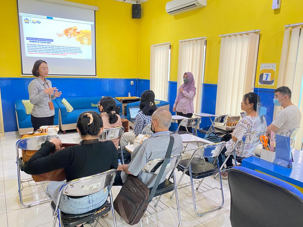 Kantor Pelayanan, Penyuluhan, dan Konsultasi Perpajakan (KP2KP) Sragen menggelar sosialisasi peraturan pajak terbaru yang diikuti oleh 7 pedagang emas di Kabupaten Sragen (Selasa, 23/5). Sosialisasi ini dilangsungkan secara luring di ruang aula KP2KP Sragen, Kabupaten Sragen.