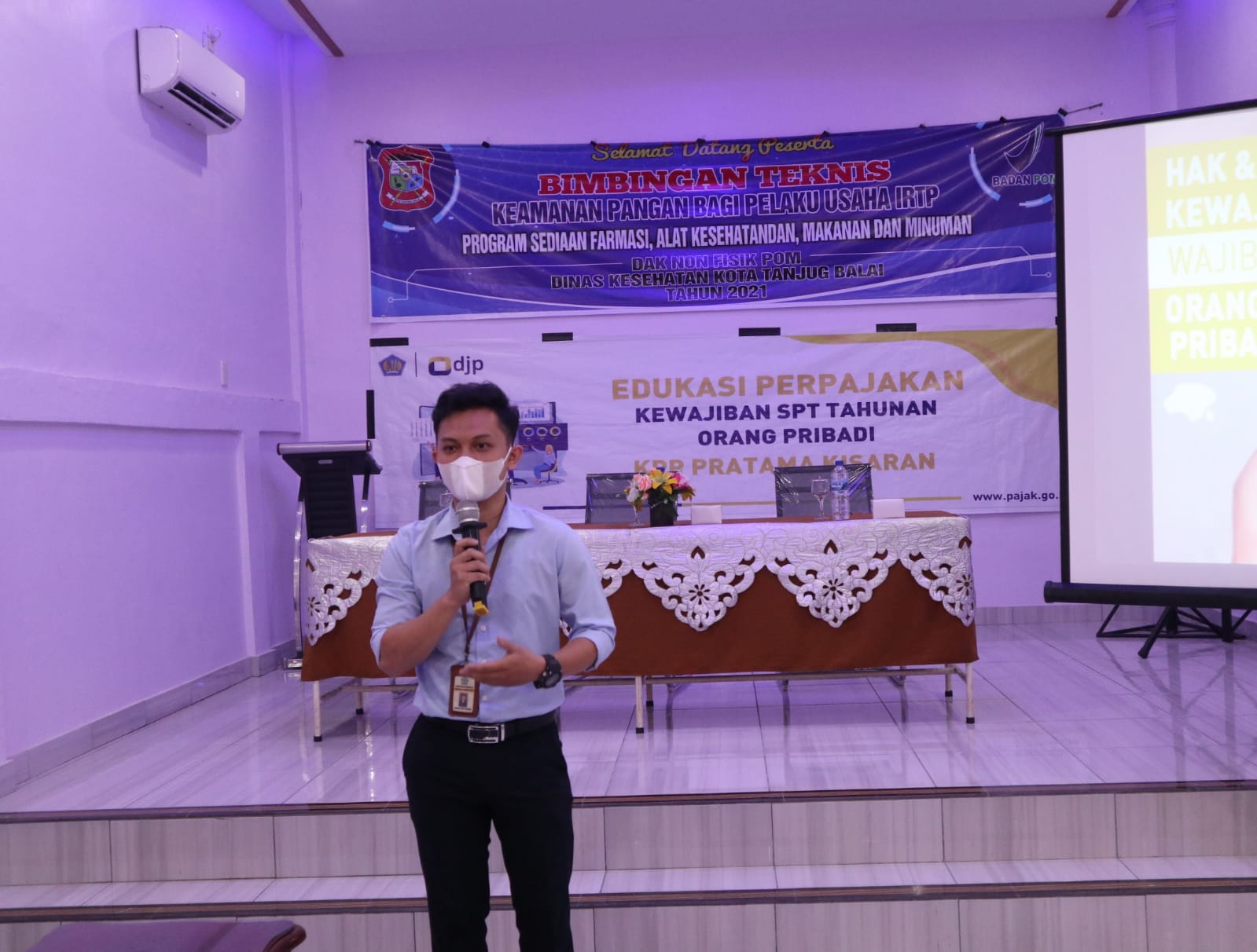 Dinas Kesehatan Kota Tanjung Balai menggelar kegiatan sosialisasi Bimbingan Teknis Keamanan Pangan Bagi Pelaku Usaha Industri Rumah Tangga Pangan (IRTP). Pada Kegiatan tersebut, Dinas Kesehatan mengundang Kantor Pelayanan, Penyuluhan, dan Konsultasi Perpajakan (KP2KP) Tanjung Balai dan Kantor Pelayanan Pajak (KPP) Pratama Kisaran sebagai Narasumber dalam penyampaian materi edukasi terkait dengan alur pendaftaran Nomor Pokok Wajib Pajak (NPWP) untuk usaha IRTP, Proses pembayaran pajak, dan jenis usaha pemegang yang wajib memiliki NPWP.yang diselenggarakan di Aula Resto Bahagia, Kota Tanjungbalai, Sumatera Utara (Rabu, 13/10).