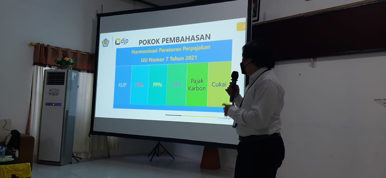Kantor Pelayanan, Penyuluhan, dan Konsultasi Perpajakan (KP2KP) Tanjung Selor menjadi narasumber dalam kegiatan penyuluhan kewajiban perpajakan instansi pemerintah dan Program Pengungkapan Sukarela (PPS) yang diadakan oleh Korem 092/Maharajalila di ruang serbaguna Kantor Wilayah Kementerian Agama Provinsi Kalimantan Utara, Kab. Bulungan (Senin, 14/2).