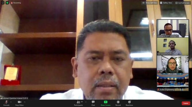 Koordinator Wilayah VI KPK menyelenggarakan FGD terkait Optimalisasi Penerimaan sektor Pajak Daerah secara daring melalui zoom meeting di ruang bidang P2Humas Kanwil DJP Kalimantan Barat, Pontianak (Kamis, 16/9).