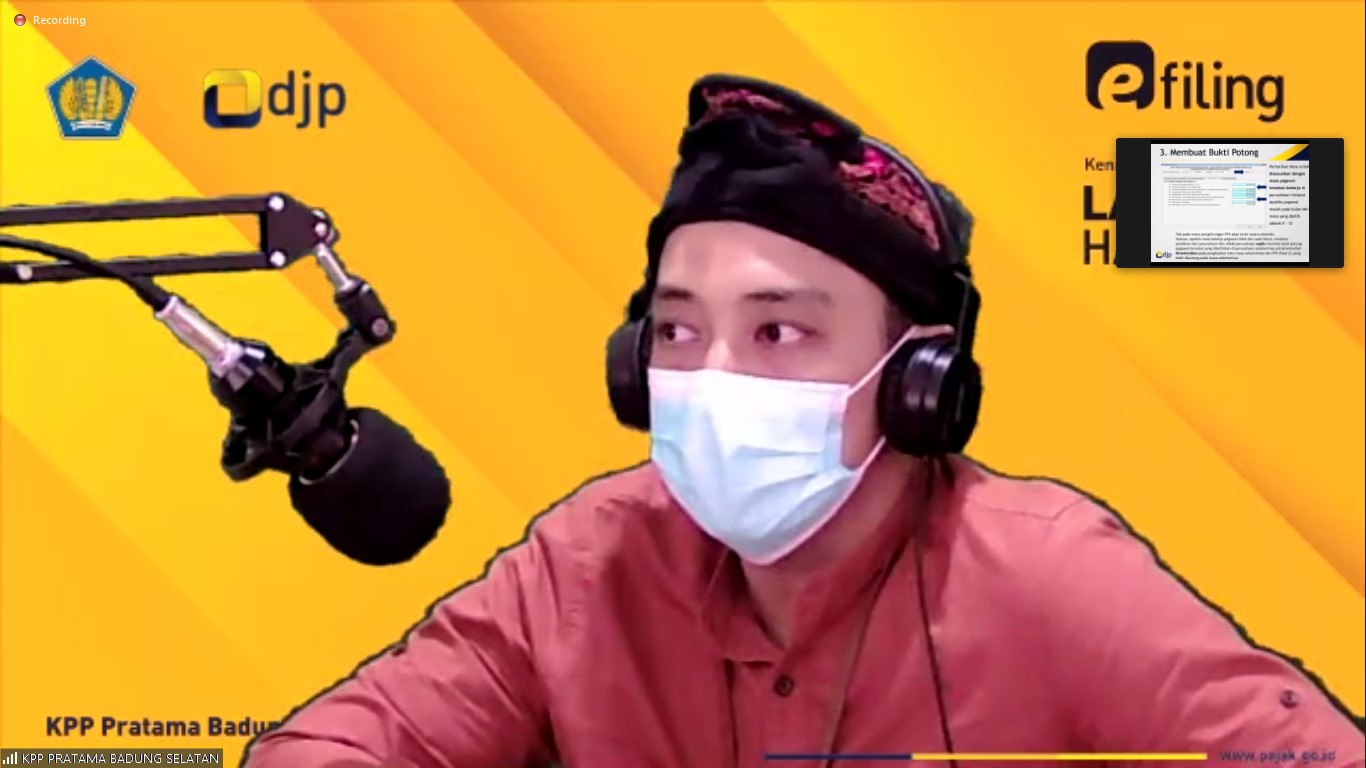 Kantor Pelayanan Pajak (KPP) Pratama Badung Selatan mengadakan sosialisasi Tata Cara Penerbitan Bukti Potong 1721 A1/A2 dan Tata Cara Pelaporan SPT Tahunan Karyawan melalui e-Filing kepada Bendahara BOS UPT Disdikpora Kecamatan Kuta secara daring di Bali (Kamis,18/2).