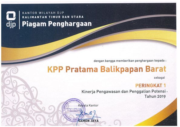 KPP Pratama Balikpapan Barat sebelumnya juga telah meraih prestasi tingkat nasional atas Kinerja Penerimaan Pajak Terbaik 2019 dengan pencapaian target penerimaan sebesar 120,30% dan pertumbuhan netto penerimaan sebesar 78,43%.