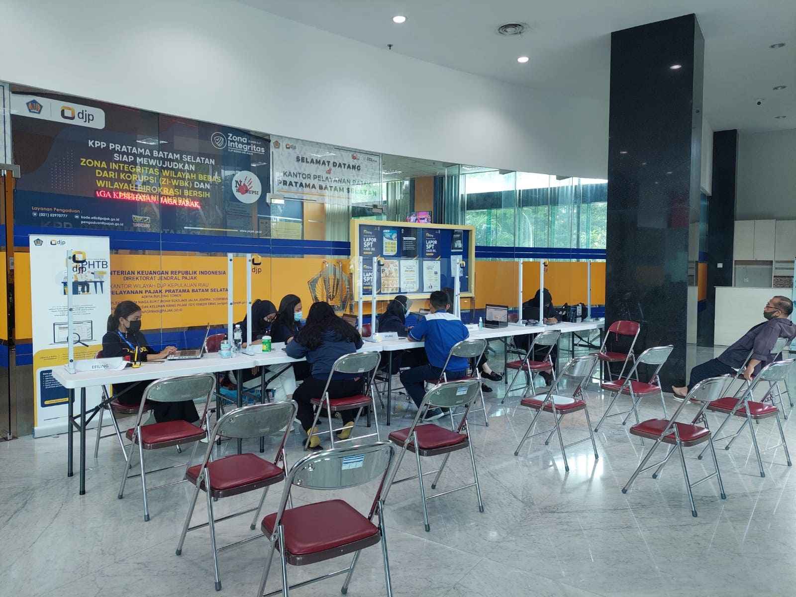 Kantor Pelayanan Pajak (KPP) Pratama Batam Selatan menambah pelayanan untuk pelaporan Surat Pemberitahuan (SPT) Tahunan Orang Pribadi di lobi utama Gedung ATB Sukajadi, Batam, Kepulauan Riau (Selasa, 1/3). Pada layanan ini, petugas KPP Pratama Batam Selatan dibantu oleh Relawan Pajak. Pelayanan yang diberikan untuk wajib pajak yang pelaporannya ingin dibantu oleh petugas ini akan berlangsung sepanjang bulan Maret 2022.