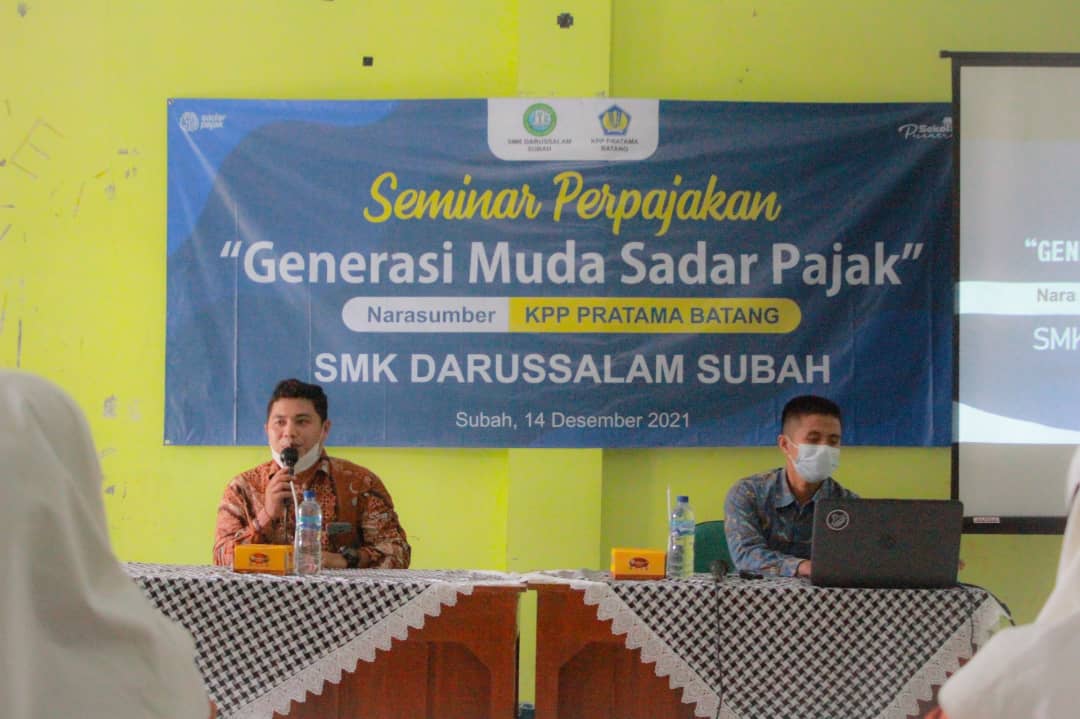 Kantor Pelayanan Pajak (KPP) Pratama Batang mengadakan acara seminar perpajakan dengan tema "Generasi Muda Sadar Pajak" bersama Sekolah Menengah Kejuruan (SMK) Darussalam Subah Kabupaten Batang (Selasa, 14/12).