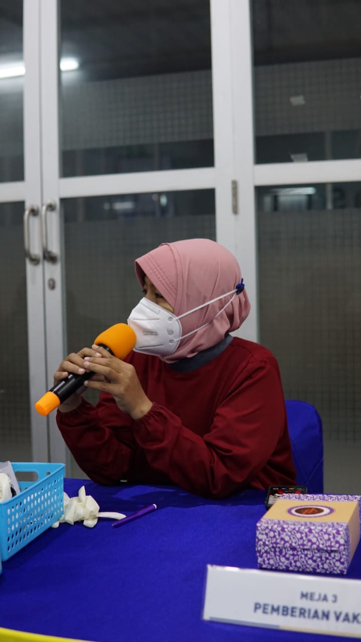 Kegiatan yang dimulai pada pukul 09.00 WITA ini berlangsung dengan tertib. Sebagai langkah pertama tindakan preventif terjadinya efek samping berat karena pemberian vaksinasi, seluruh pegawai diwajibkan menyimak sesi briefing yang diisi oleh Asesi Nova Dewi Susanti selaku tenaga kesehatan yang bertugas. "Diharapkan seluruh pegawai yang divaksinasi dalam kondisi harus sudah sarapan ya," ujar Asesi.