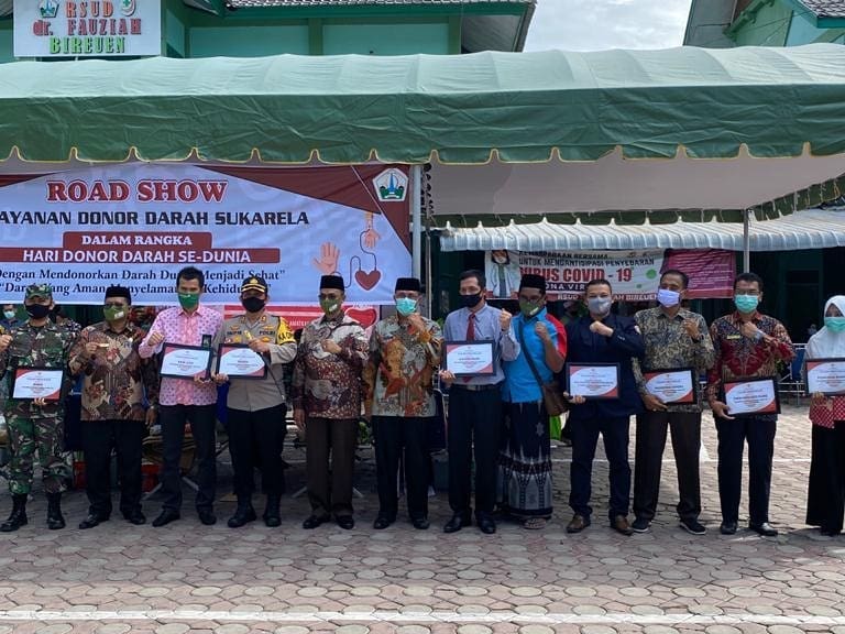 KPP Pratama Bireuen menerima penghargaan dari Pemerintah Kabupaten Bireuen dan RSUD dr. Fauziah Bireuen dalam peringatan Hari Donor Darah se-Dunia di Lapangan RSUD dr. Fauziah Bireuen, Aceh (Kamis, 25/6).