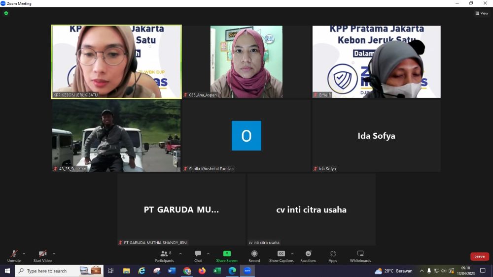 Kantor Pelayanan Pajak (KPP) Pratama Jakarta Kebon Jeruk Satu megadakan kegiatan kelas pajak secara daring terkait tata cara mengisi formulir SPT Tahunan 1771 secara online menggunakan e-form di KPP Pratama Jakarta Kebon Jeruk Satu, Kebon Jeruk, Jakarta Barat (Kamis, 13/4).