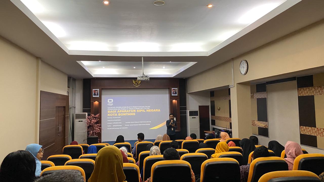 Kantor Pelayanan Pajak (KPP) Bontang kembali menyelenggarakan kegiatan Bimbingan Teknis (Bimtek) Pembuatan Bukti Potong 1721-A2 di Ruang IHT KPP Bontang, Kota Bontang, Kalimantan Timur (Kamis, 16/1). Bimtek ini diikuti oleh para Satuan Kerja Perangkat Daerah (SKPD) se-Kota Bontang.