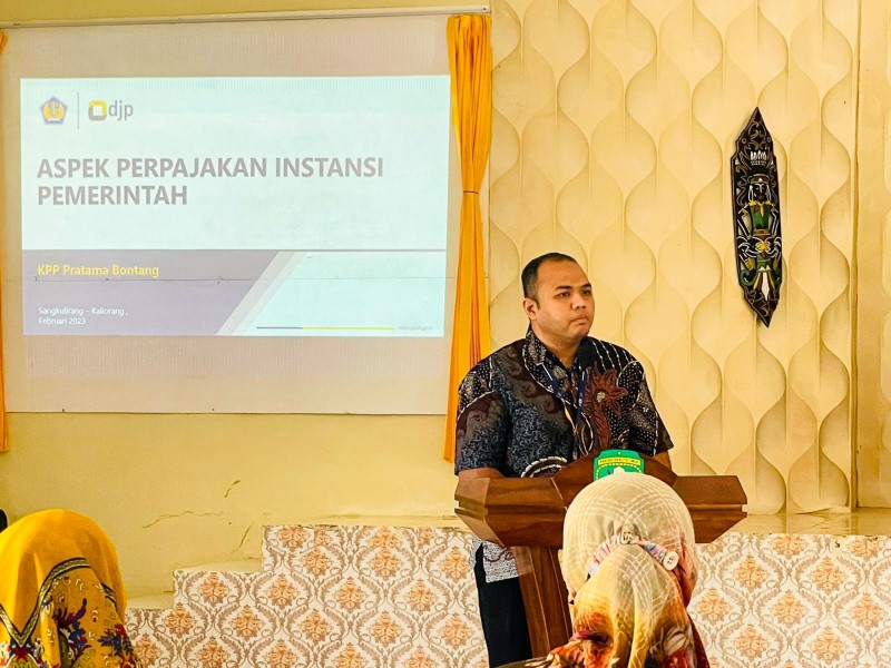 Kantor Pelayanan Pajak (KPP) Pratama Bontang menggelar kegiatan Sosialisasi Aspek Perpajakan Instansi Pemerintah di Kantor Desa Kecamatan Sangkulirang, Kabupaten Kutai Timur (Selasa, 9/2). Kegiatan ini dilaksanakan dalam rangka memberikan pemahaman kepada para bendahara desa di Kecamatan Sangkulirang terkait hak dan kewajiban Bendahara Instansi Pemerintah.