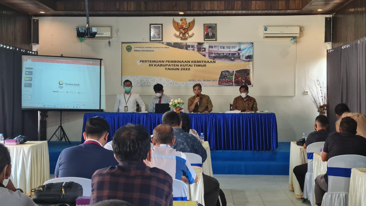 Kantor Pelayanan Pajak (KPP) Pratama Bontang memenuhi undangan dari Dinas Perkebunan Provinsi Kalimantan Timur untuk membahas materi terkait Hak dan Kewajiban Perpajakan Wajib Pajak Koperasi dalam acara Pertemuan Pembinaan Kemitraan Dinas Perkebunan (Senin, 6/6). Acara ini dilangsungkan secara tatap muka di Hotel MS Sangatta Utara, Kabupaten Kutai Timur.