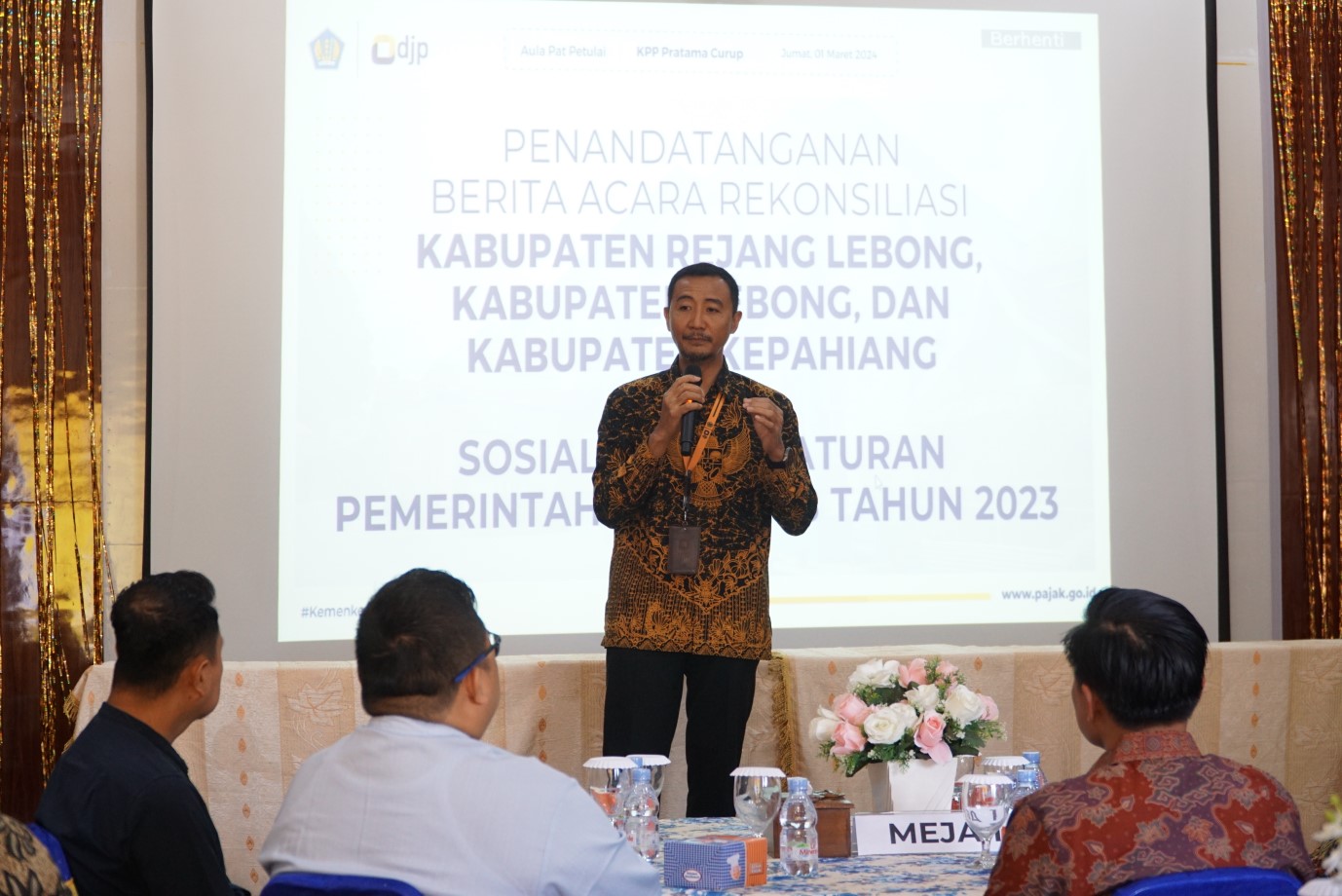“Penandatanganan BA Rekon merupakan yang pertama kali dilaksanakan bersama dengan tiga (3) kabupaten yang menjadi wilayah kerja KPP Pratama Curup yaitu Kabupaten Rejang Lebong, Lebong, dan Kepahiang sekaligus, ke depannya akan dilaksanakan secara berkelanjutan,” tutur Imam dalam sambutannya.