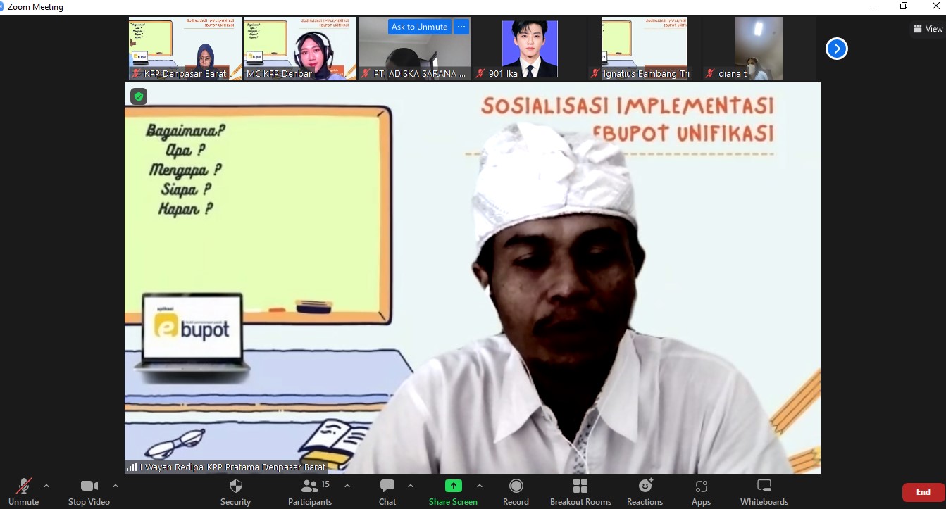 Kantor Pelayanan Pajak (KPP) Pratama Denpasar Barat mengadakan sosialisasi Implementasi e-Bupot Unifikasi secara daring melalui aplikasi Zoom Meeting, di Denpasar (Rabu,13/7).