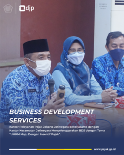 Kantor Pelayanan Pajak (KPP) Pratama Jakarta Jatinegara bekerja sama dengan Kecamatan Jatinegara mengadakan kegiatan Bussiness Development Service (BDS) dengan tema “UMKM Maju Dengan Insentif Pajak” di Kantor Kecamatan Jatinegara (Rabu, 24/11).