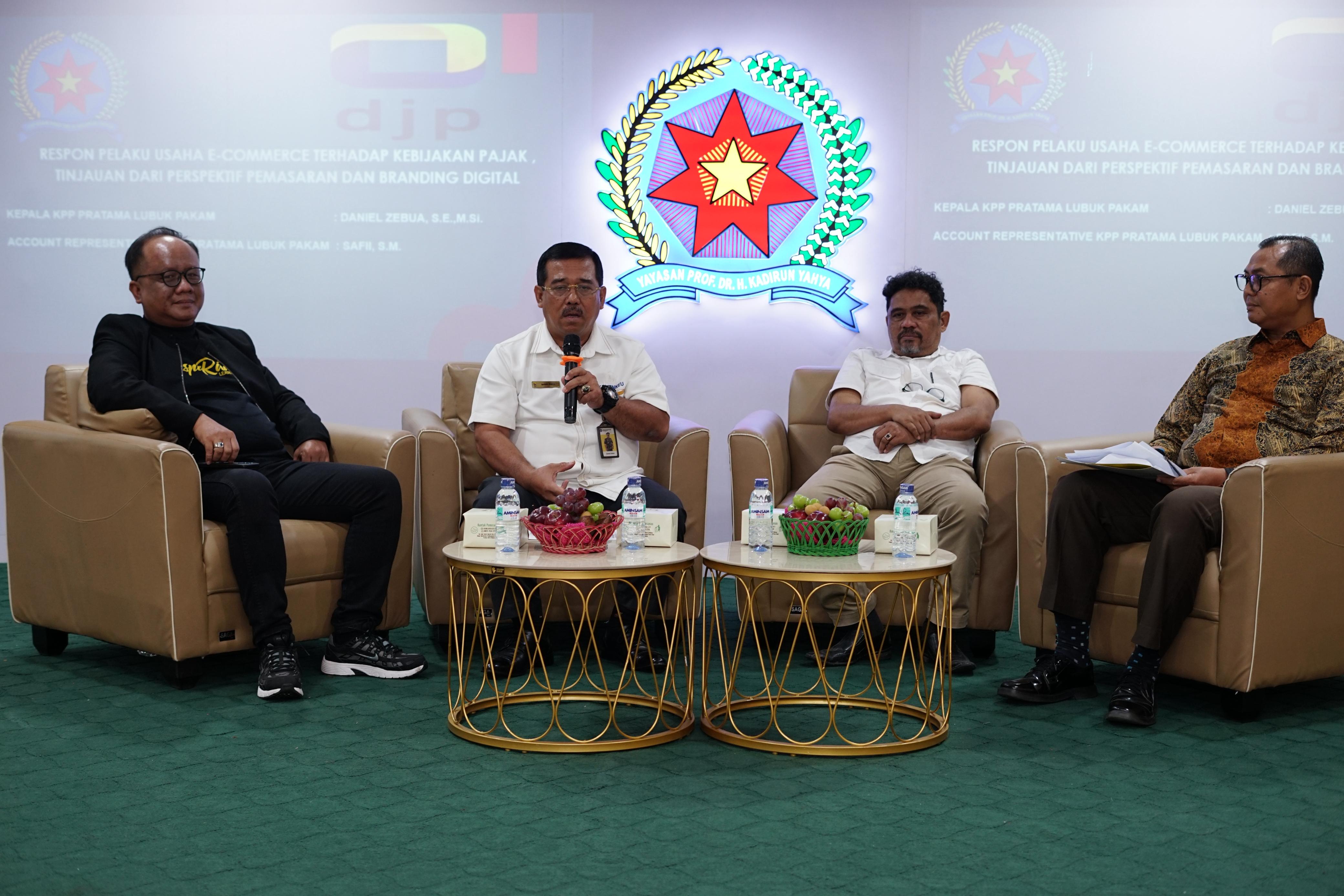 Dalam sambutannya, Kepala KPP Pratama Lubuk Pakam, Daniel Zebua, menyampaikan, “Perkembangan regulasi perpajakan di sektor e-commerce yang terus beradaptasi dengan pesatnya transformasi digital. Kebijakan perpajakan tentunya memengaruhi pola strategi pemasaran dan branding digital para pelaku usaha, sekaligus menjadi instrumen penting dalam menciptakan persaingan usaha yang sehat dan berkeadilan.”