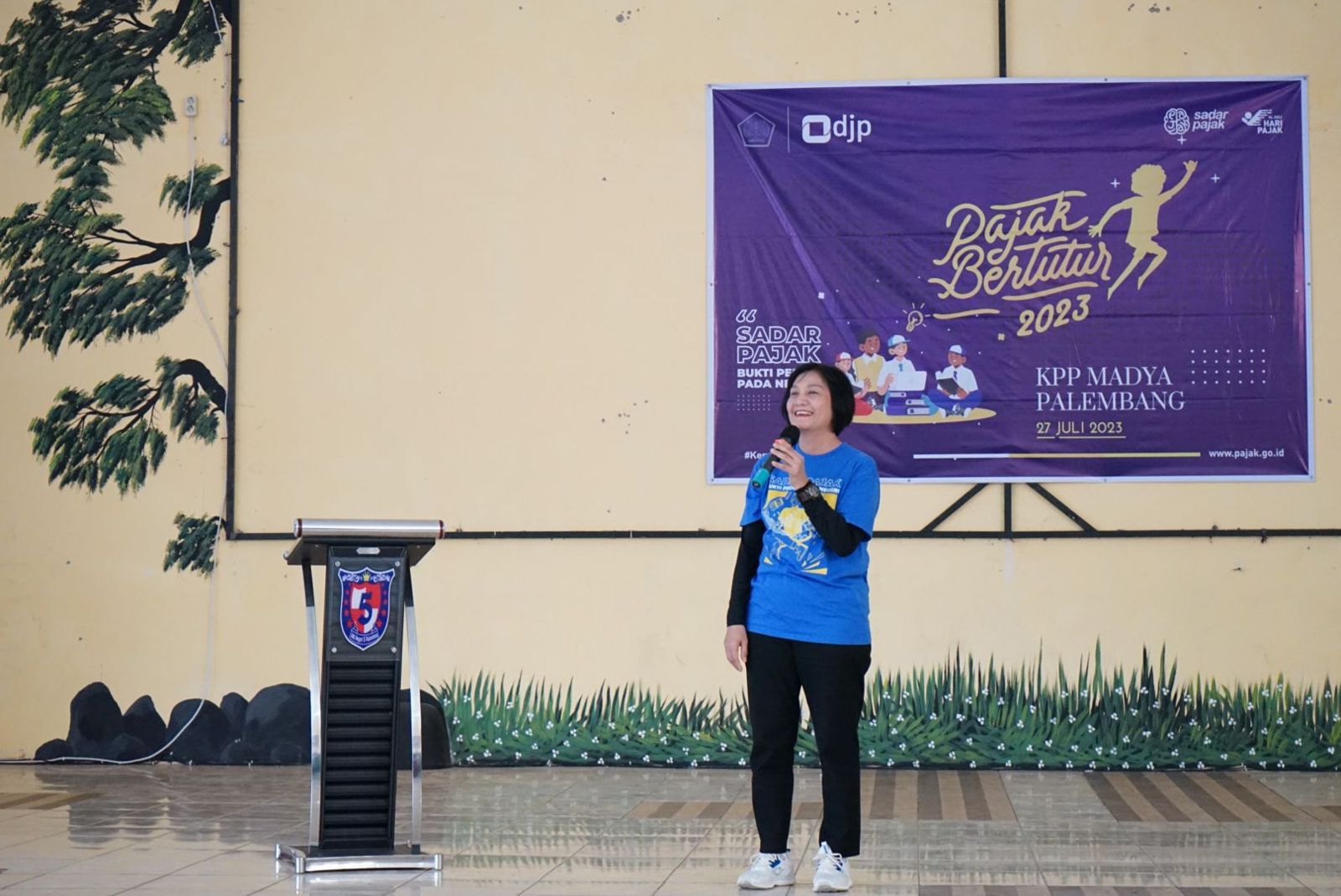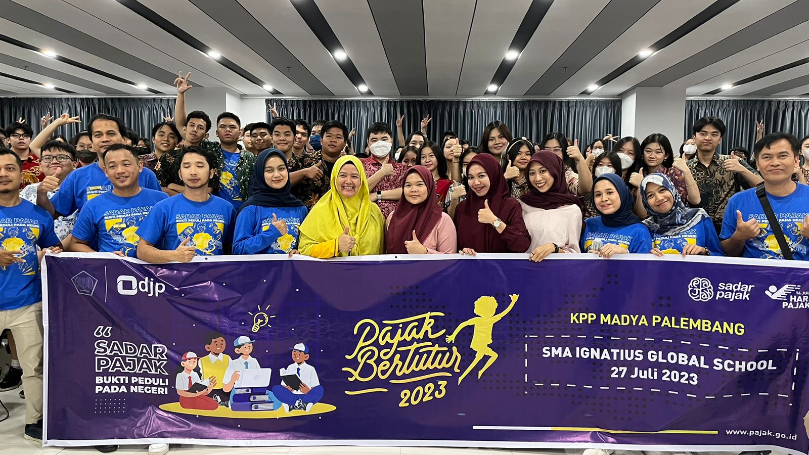Kantor Pelayanan Pajak (KPP) Madya Palembang melaksanakan Pajak Bertutur 2023 di dua Sekolah Menengah Atas, yaitu SMA Negeri 5 Palembang dan SMA Ignatius Global School Palembang di Palembang (Kamis, 27/7).