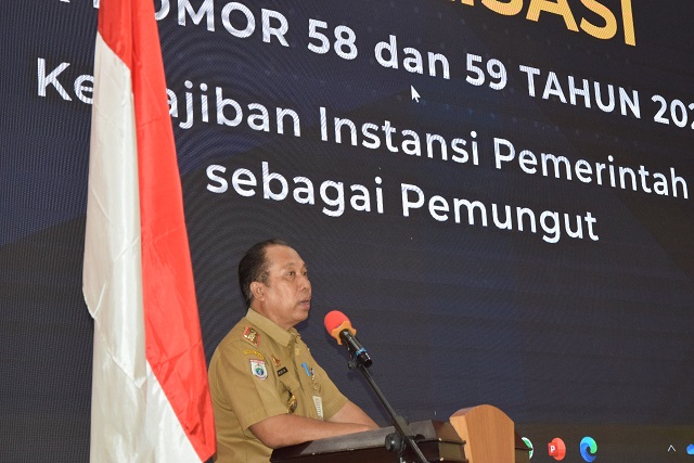 Kepala Badan Keuangan dan Aset Daerah (BKAD) Kabupaten Polewali Mandar Drs. Mukim, MM turut serta hadir memberikan sambutan pada pembukaan ACARA sosialisasi.