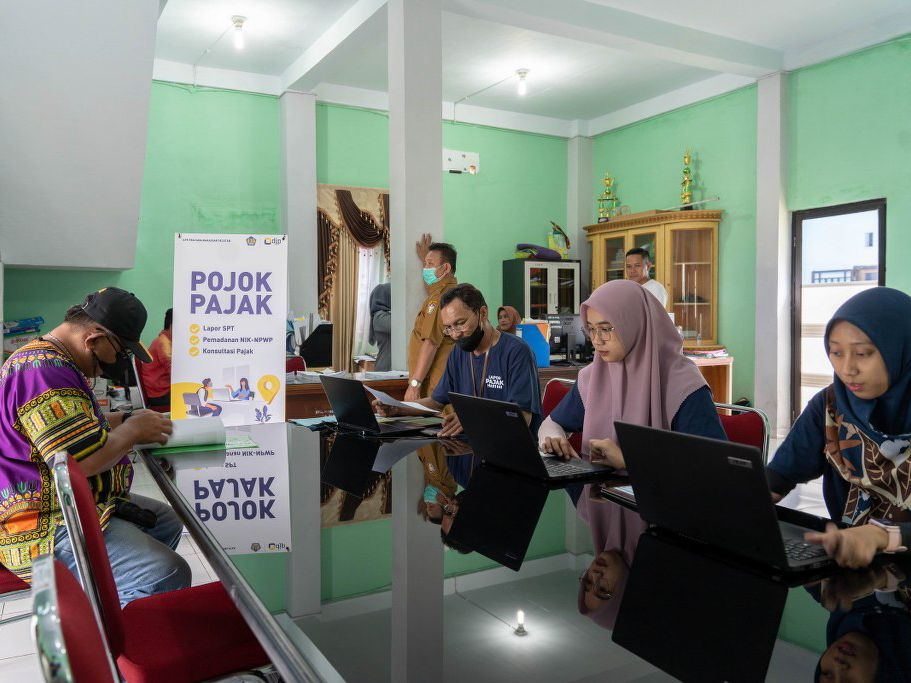 Petugas Pojok Pajak Makassar Selatan yang terdiri dari Penyuluh Pajak dan Pelaksana KPP Pratama Makassar Selatan memberikan asistensi pelaporan SPT Tahunan dan pemadanan Nomor Induk Kependudukan (NIK) menjadi Nomor Pokok Wajib Pajak (NPWP) secara daring. Petugas juga memberikan layanan aktivasi/cetak ulang Electronic Filing Identification Number (EFIN) dan memberikan suvenir kepada wajib pajak sebagai bentuk apresiasi.