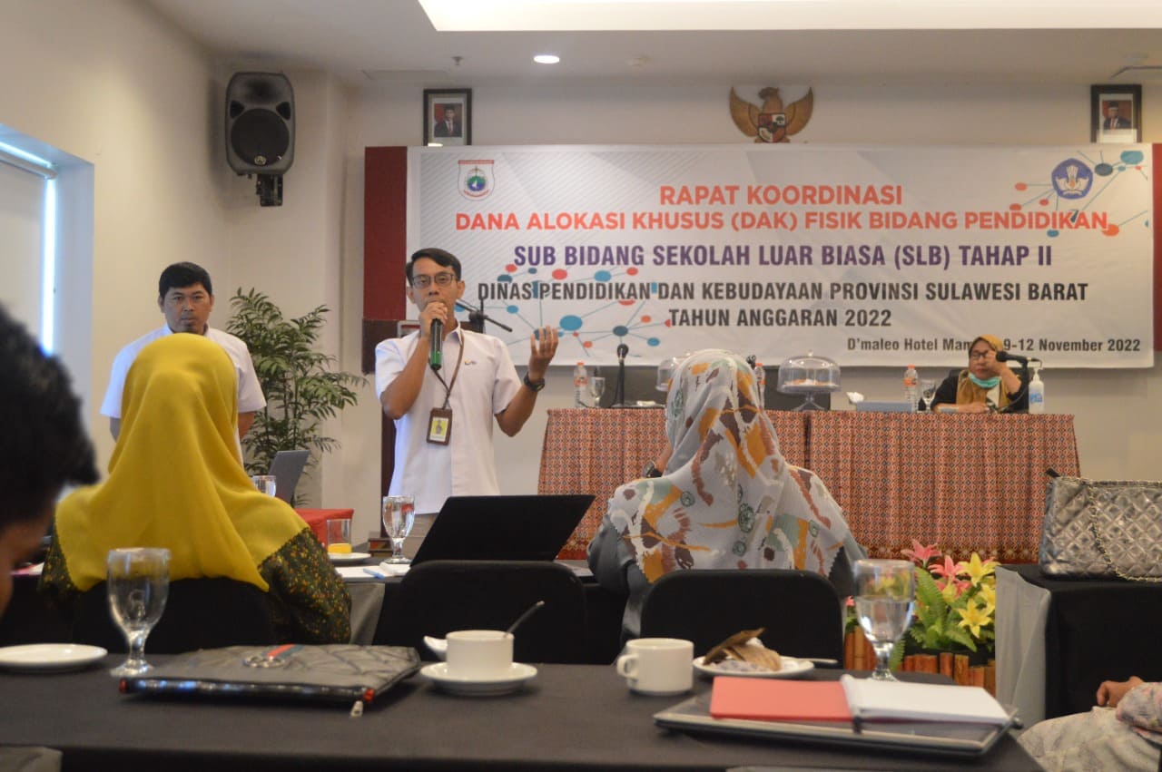 Dalam rangka kelancaran pelaksanaan Pembangunan Sarana dan Prasarana Pendidikan melalui Dana Alokasi Khusus (DAK) Fisik Bidang Pendidikan Sub Bidang Sekolah Luar Biasa (SLB) Tahun Anggaran 2022, Dinas Pendidikan dan Kebudayaan Daerah Provinsi Sulawesi Barat melalui Bidang Pendidikan Khusus dan Layanan Khusus, TP PAUD, dan Pendidikan Dasar menyelenggarakan kegiatan ini.