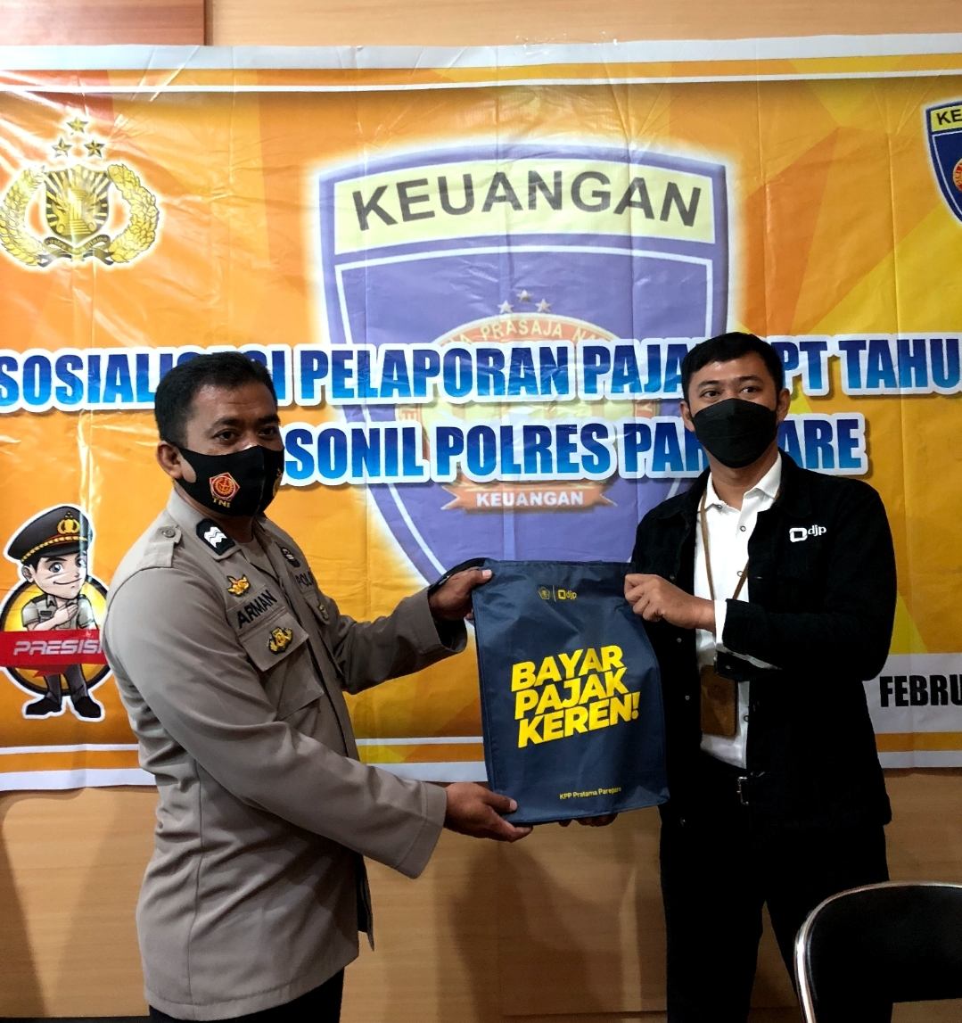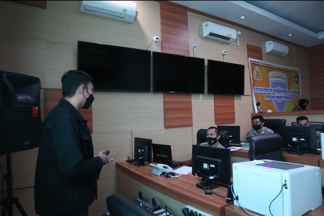 Tim Penyuluh Pajak Kantor Pelayanan Pajak (KPP) Pratama Parepare menggelar Sosialisasi Pelaporan SPT Tahunan melalui e-filing bersama personil Polres Kota Parepare (Senin, 7/2). Acara ini berlangsung di Ruang Pertemuan Kantor Satlantas Polres Parepare Jl. Andi Isa No.3, Ujung Sabbang, Kec. Ujung, Kota Parepare.