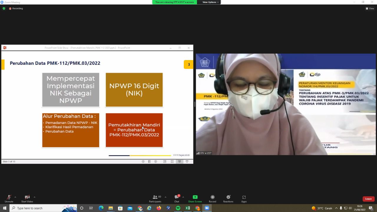 Fungsional Penyuluh Pajak Kantor Pelayanan Pajak Penanaman Modal Asing Empat (KPP PMA Empat) kembali mengadakan Kelas Pajak secara daring yang kali ini membahas tentang Insentif Pajak Untuk Wajib Pajak terdampak Pandemi Covid-19, Pemutakhiran Mandiri NPWP Bagi Wajib Pajak Orang Pribadi, Wajib Pajak Badan, dan Wajib Pajak Instansi Pemerintah, serta tentang Faktur Pajak di Jakarta (Selasa, 23/8). Kelas pajak ini diselenggarakan pada 23 dan 25 Agustus 2022.