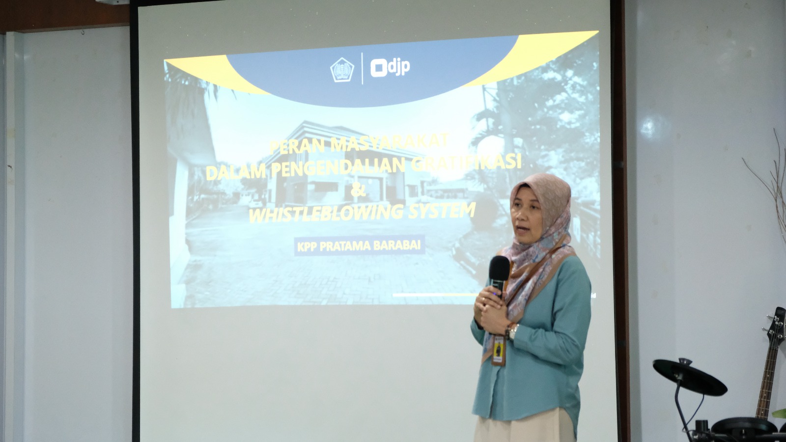 Acara dilanjutkan dengan penyampaian materi dari Penyuluh Pajak Agata Cahyaning Widhiartanti terkait Peraturan Menteri Keuangan Nomor 168 Tahun 2024 (PMK-168/2024) Tentang Petunjuk Pelaksanaan Pemotongan Pajak Atas Penghasilan Sehubungan Dengan Pekerjaan, Jasa, Atau Kegiatan Orang Pribadi dan PER-05/PJ/2024 tentang Perubahan Atas Peraturan Direktur Jenderal Pajak Nomor PER-17/PJ/2021 Tentang Bentuk dan Tata Cara Pembuatan Bukti Pemotongan dan/atau Pemungutan Pajak, Serta Bentuk, Isi, Tata Cara Pengisian, dan Penyampaian Surat Pemberitahuan Masa Bagi Instansi Pemerintah.
