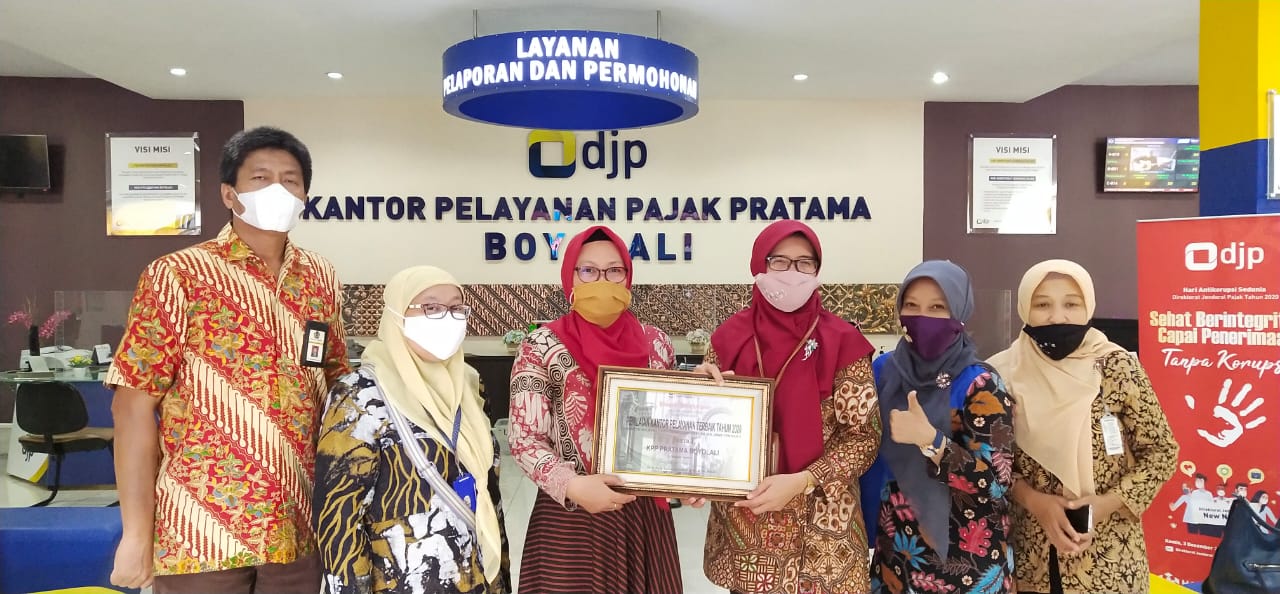 Kantor Pelayanan Pajak Pratama Boyolali menerima penganugerahan Kantor Pelayanan Terbaik se-Kantor Wilayah DJP Jawa Tengah II yang diselenggarakan melalui aplikasi Zoom dari Surakarta (Senin, 7/12).