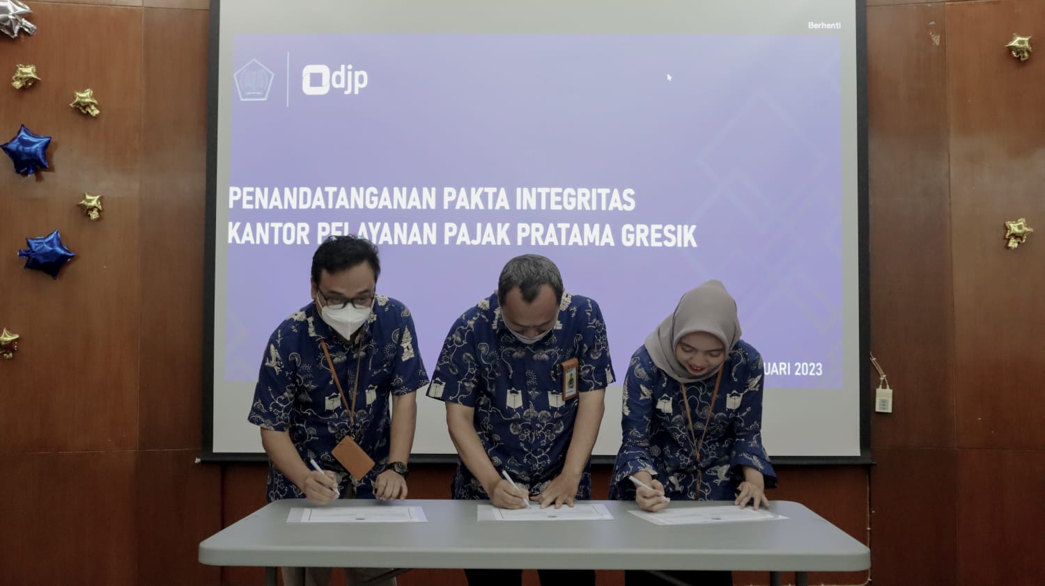 Kegiatan diawali dengan Penandatanganan Pakta Integritas oleh seluruh pegawai KPP Pratama Gresik dan diakhiri dengan Penandatanganan Piagam Pencanangan oleh Kepala KPP Pratama Gresik.