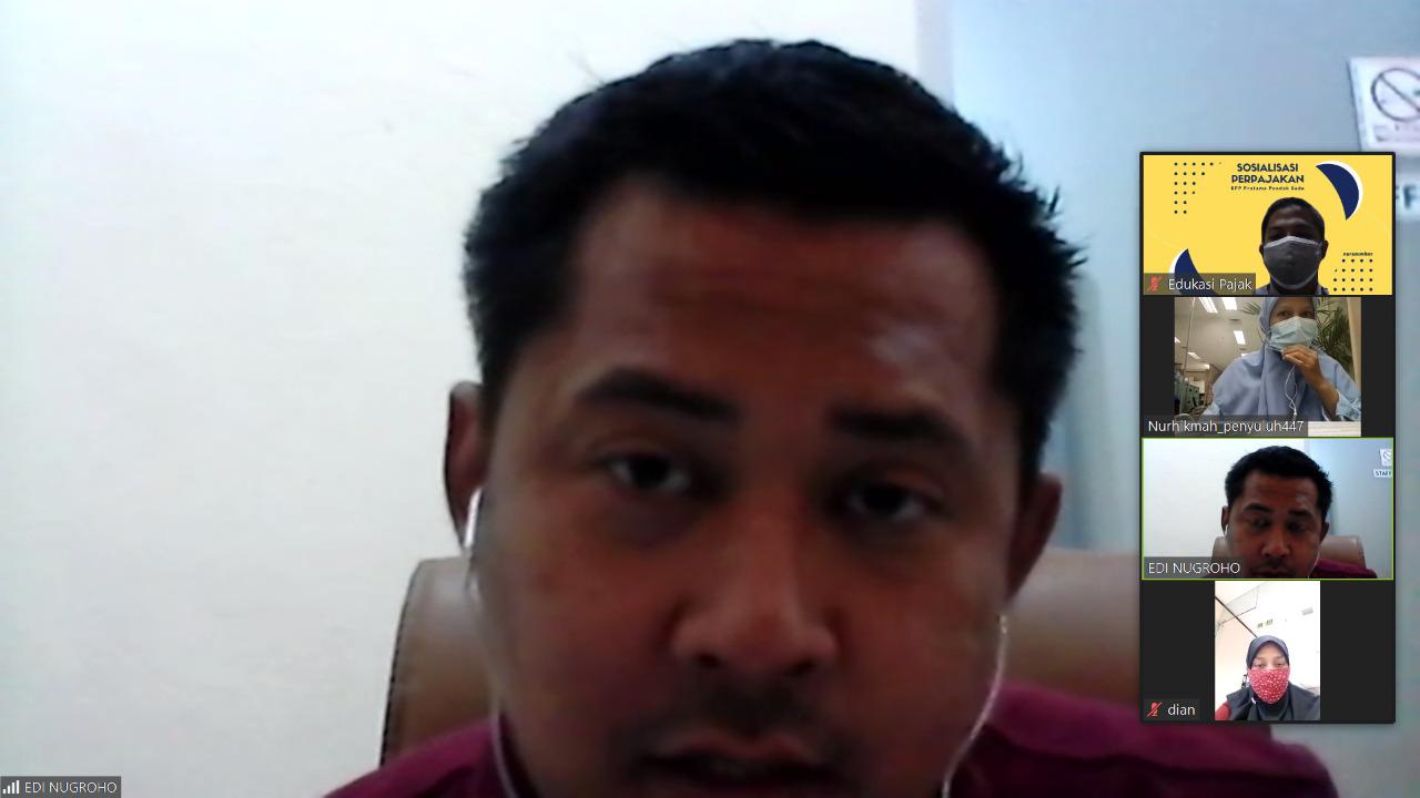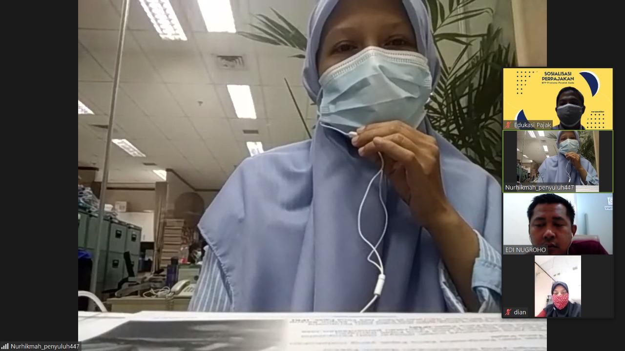 Menyesuaikan dengan situasi pandemi, edukasi perpajakan kepada wajib pajak ini dilakukan secara daring melalui Aplikasi Zoom Cloud Meeting.