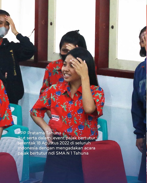 Kantor Pelayanan Pajak (KPP) Pratama Tahuna melaksanakan Pajak Bertutur 2022 bertempat di Aula Sekolah Menengah Atas (SMA) Negeri 1 Tahuna (Kamis, 18/8). Kegiatan Pajak Bertutur ini dihadiri oleh tiga orang guru serta empat puluh siswa dan siswi dari kelas 12. Acara tersebut berlangsung dari pukul 09.00 sampai dengan 12.00 WITA.