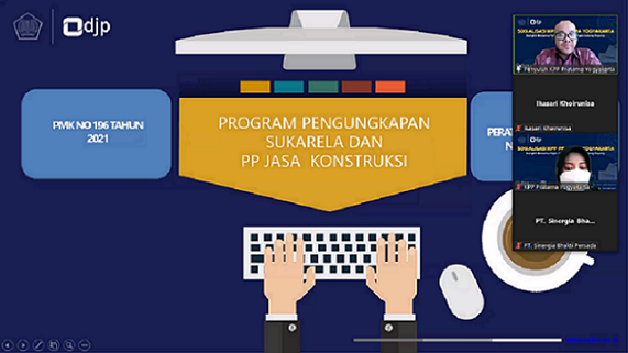 Kantor Pelayanan Pajak (KPP) Pratama Yogyakarta mengadakan sosialisasi mengenai aspek perpajakan atas Jasa Konstruksi menggunakan aplikasi zoom meeting (Selasa, 12/04).