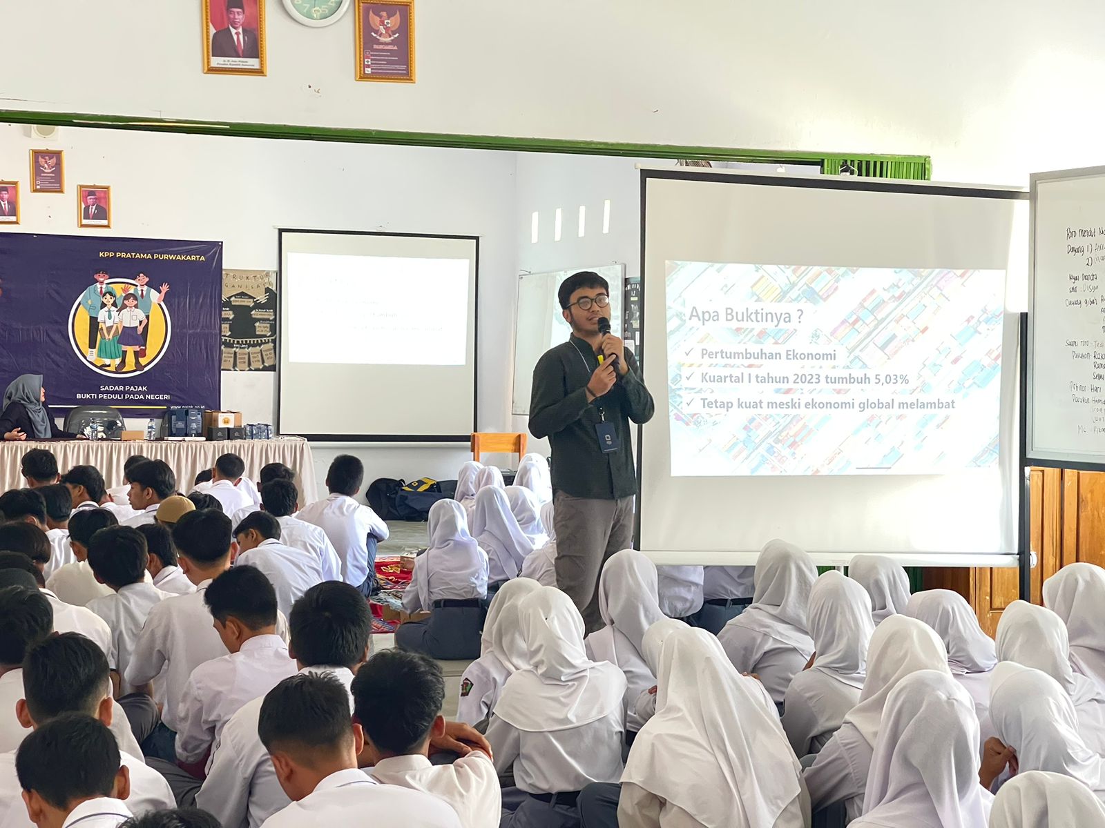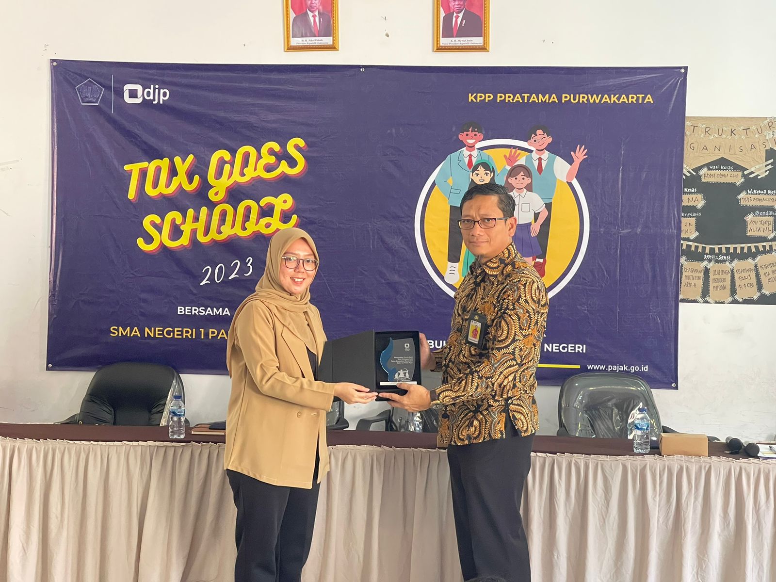 Kantor Pelayanan Pajak (KPP) Purwakarta menggelar kegiatan Tax Goes to School (TGTS) yang diadakan di Aula Sekolah Menengah Atas (SMA) Negeri 1 Pasawahan, Jl. Kapten Halim No.1, Pasawahan, Kec. Pasawahan, Kabupaten Purwakarta (Selasa, 5/9).